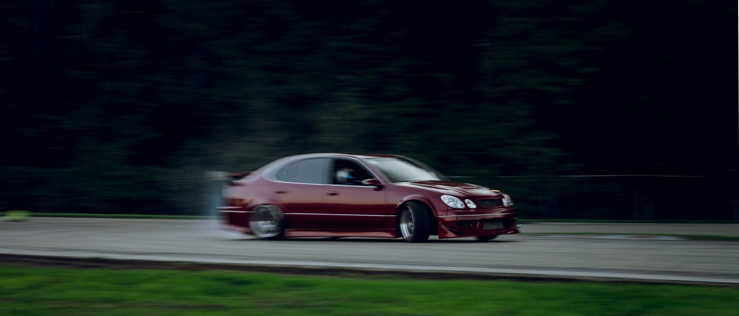 Okay, well I might actually be a bit of a Toyota guy. Eric’s GS wasn’t something prior to this event I paid much attention to. In it’s previous iteration, it sported a two tone look and was rather non-descript outside of that, well for drift cars at least. Don’t get me wrong it was a great machine and certainly one I have pictures of floating around on my hard drives, but it wasn’t as eye-catching as it’s current iteration. I remember a couple of days before Final Bout seeing his GS posted all over online and I was so stoked to see it in person. The deep red, winged sedan was a far cry from it’s former self and one I was very happy to get to document in the way I did. Now I didn’t ask Eric to park his GS where it was, I was actually heading back into the pits, but I saw the opportunity and I jumped.